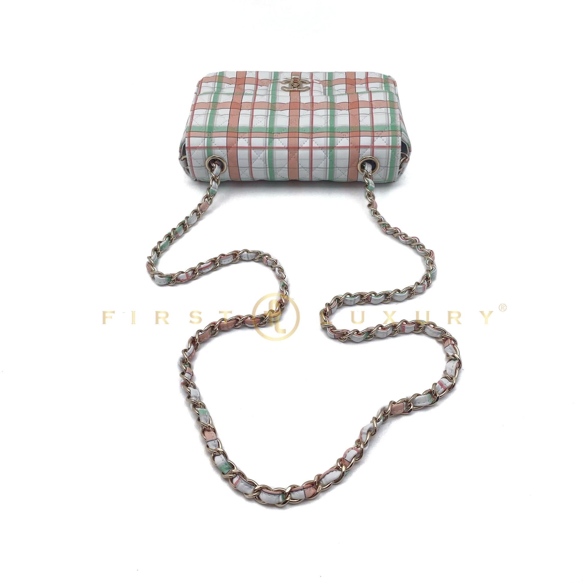Rectangular Flap Mini Checked Calfskin - Green / Orange / GHW